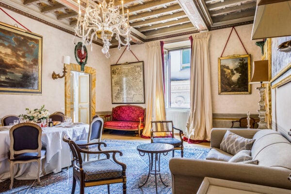 Set in a remarkable 16th-century palazzo, the Santa Croce Donatello is a spacious three-bedroom, three-bathroom apartment located right on Piazza Santa Croce. This Renaissance palazzo is one of the few remaining in Florence with a stunning frescoed facade. You’ll love exploring the historic Santa Croce neighborhood and strolling to the Duomo and Uffizi Gallery nearby. If you’re lucky enough to visit in June, you can see the famous Calcio Storico that takes place in Piazza Santa Croce.